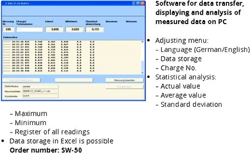 - Optional: software for data transfer and analysis - Part No. SW-50
