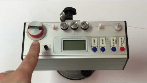 Yarn tension meter with motorized take-up fixture for measuring and adjusting the tension of sewing machines to get best and highest quality stitched seams. Therefore e. g. yarn breaks can be adjusted under constant conditions (speed of the thread).