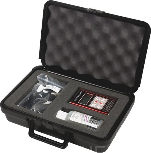 The TI-25M Ultrasonic Thickness Gauge is supplied as a complete kit with the gauge, probe, 4 oz. bottle of coupling fluid, 2 AA batteries, NIST Calibration Certificate, and Operating Instruction Manual - all in a foam-fitted carryingcase
