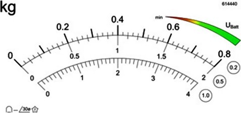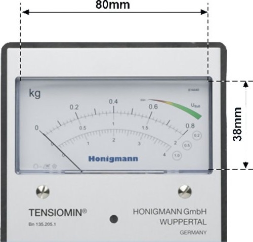 The scale can be marked with empirical units (0-100%) or, optionally, calibrated to display values in two(2) different tension ranges with any units of measure (grams, cN, daN, Kg, Newtons, etc.)