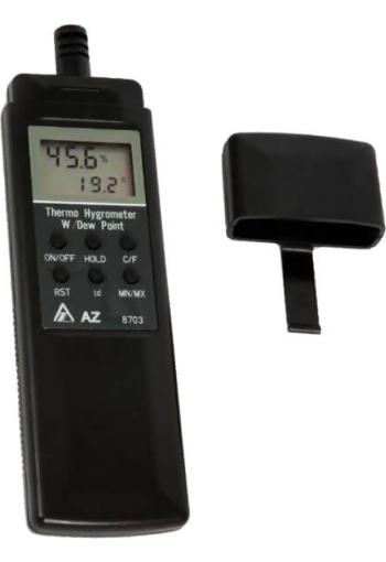 The Tramex AZ8703 Digital Hygrometer is a pocket sized digital hygrometer that provides fast and accurate measurement of relative humidity, temperature and dew point of the environment.