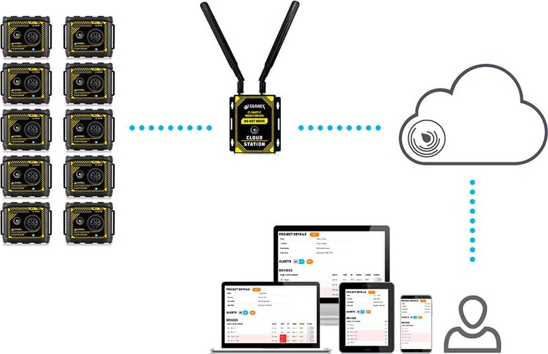 The on-site Sensors, with long-life batteries, transmit relative humidity, temperature (ºC and ºF), dew point and grains per pound / grams per kilo readings wirelessly via the Tramex Cloud Station enabling remote monitoring of up to 200 on-site Sensors on the Tramex Cloud platform. Tramex Cloud is a secure platform to store and report your moisture, temperature and relative humidity measurements, get notified of adverse conditions and quickly monitor status from any browser.