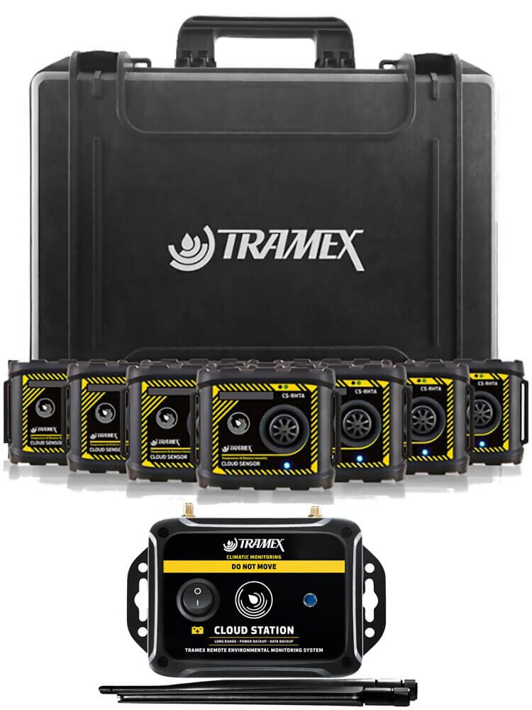 The Tramex TREMS Remote Environmental Monitoring System comprises CS-RHTA Tramex Cloud Sensors and a Tramex Cloud Station router. Multiple Sensors can be used with one Station and additional sensor Accessory Packs are also available. Registration and on-site set-up is simple using a QR code check-in procedure.
