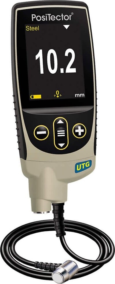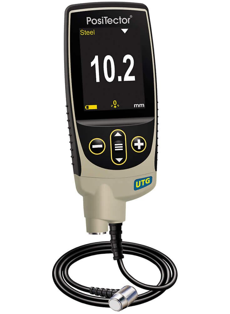 Our PosiTector UTG ultrasonic wall thickness instruments are designed to accurately measure the wall thickness of carbon steel, aluminum, stainless steel and plastic.PosiTector UTG probes utilize a 5MHz transducer. Like other UT (ultrasonic wall thickness) gages utilizing a 5MHz transducer, the PosiTector UTG is challenged to provide reliable wall thickness measurements on cast metals including iron, aluminum and zinc. The internal structure of the cast metal typically interferes with the transmission of a 5MHz sound impulse causing the gage to yield inaccurate thickness readings.
