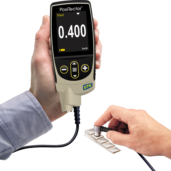 The PosiTector UTG arrives fully calibrated and ready to measure. A Long-Form Certificate of Calibration traceable to NIST is included, which documents actual readings taken by your instrument at our calibration laboratory on standards traceable to a national metrology institute. Beware of ‘Certificates’ or ‘Certificates of Conformance’ offered by competitors. These typically do not include actual instrument readings, and are often insufficient to meet common quality equirements.Verification of gage calibration and accuracy can be performed with the accessory Certified Step Block. If necessary, the PosiTector UTG operator can easily perform a calibration adjustment to align the gage’s thickness readings to match that of a known reference sample.
