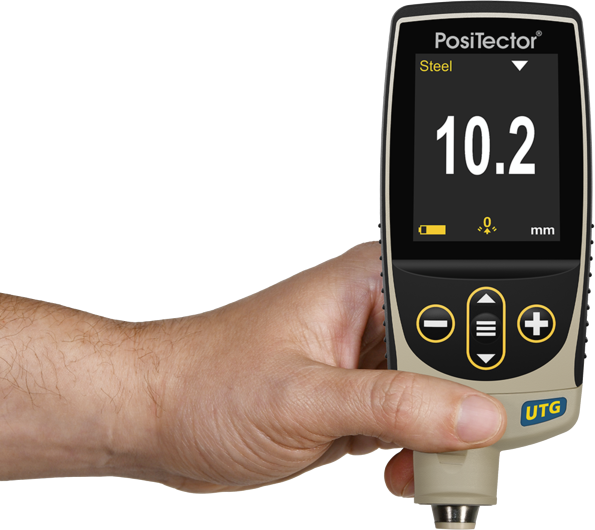 Our PosiTector UTG ultrasonic wall thickness instruments are designed to accurately measure the wall thickness of carbon steel, aluminum, stainless steel and plastic.PosiTector UTG probes utilize a 5MHz transducer. Like other UT (ultrasonic wall thickness) gages utilizing a 5MHz transducer, the PosiTector UTG is challenged to provide reliable wall thickness measurements on cast metals including iron, aluminum and zinc. The internal structure of the cast metal typically interferes with the transmission of a 5MHz sound impulse causing the gage to yield inaccurate thickness readings.