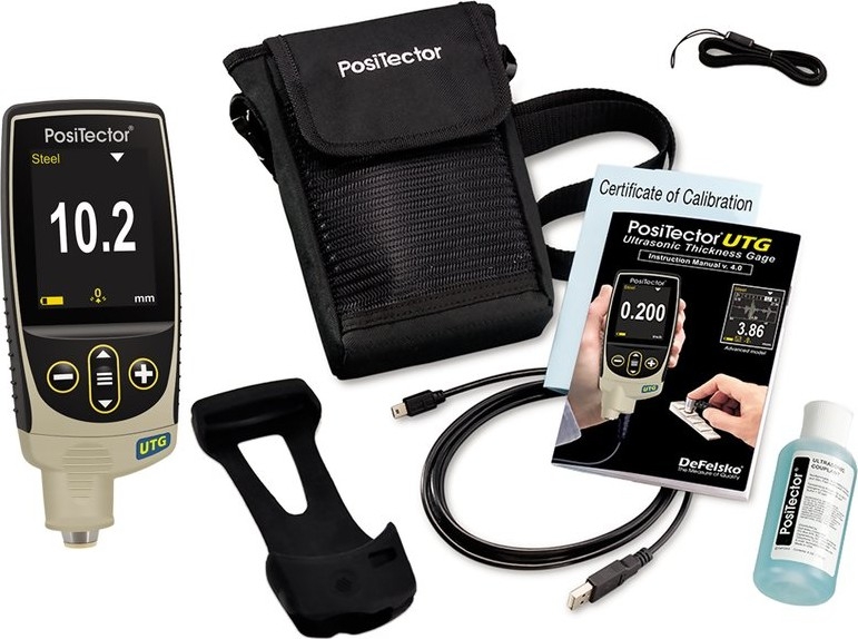 The DeFelsko PosiTector UTG CA3 Advaned Ultrasonic Thickness Gage Kit includes everything needed for testing: