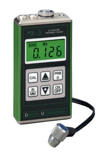 The Dakota Ultrasonics MX-3 Ultrasonic Thickness Gauge accurately measures wall thickness and the extent of corrosion of all metals, ceramics, glass and most rigid plastics - from only one side!