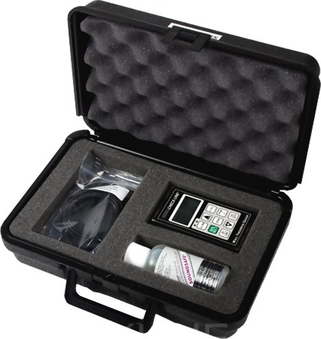 The TI-25M-MMX Through Paint Ultrasonic Thickness Gauge is supplied as a complete kit with the gauge, probe, 4 oz. bottle of coupling fluid, 2 AA batteries, NIST Calibration Certificate, and Operating Instruction Manual - all in a foam-fitted carrying case.