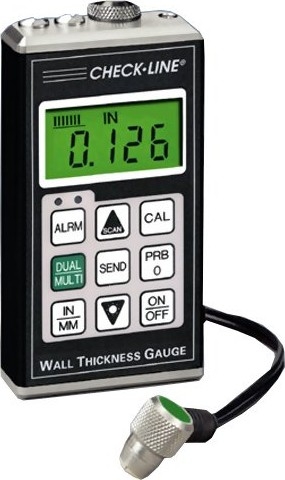 Selection Guide - Pit & Flaw Detection (Pulse-Echo) Mode | Model Number | Maximum Coating | Minimum Wall | Maximum Wall | | All Models | 0.020" (0.50mm) | 0.100" (2.54mm) | 6.000" (152.4mm) | Selection Guide - Thru-Paint (Echo-Echo) Model | Model Number | Maximum Coating | Minimum Wall | Maximum Wall | | TI-25M-MMX | 0.040" (1.00mm) | 0.100" (2.54mm) | 1.000" (25.4mm) | | TI-25M-MMX-EXT | 0.080" (2.00mm) | 0.200" (5.08mm) | 5.000" (127.0mm) |