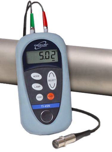 The new CHECK-LINE TI-45NHD Ultrasonic Wall Thickness Gauge accurately measures wall thickness and the extent of corrosion of all metals, ceramics, glass and most rigid plastics - from only one side!