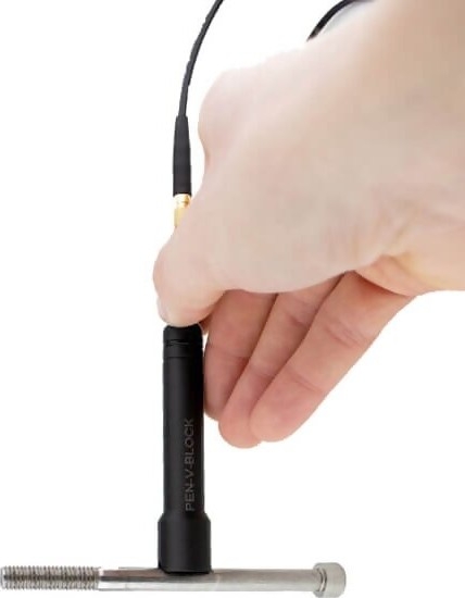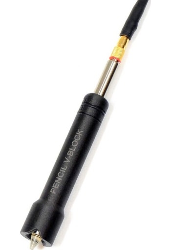 The F-000-7000 V-Block Probe Holder Pencil Probe spring-loaded pencil probe transducer holder provides enhanced control when measuring small-diameter tubes and other curved surfaces. It can also be used on flat surfaces for better repeatability and quick perpendicular placing of the probe to achieve quick and easy repeatable measuring results.